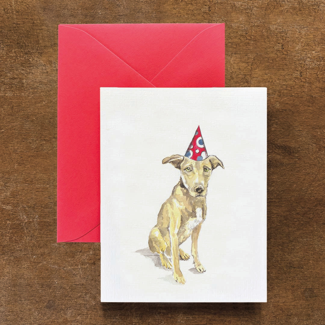 Celebrate special birthdays with beautifully crafted dog watercolor greeting cards. Each card is a print of an original commissioned pet portrait watercolor, conveying the individuality of genuine family companions. Use these furry friend illustrations for sending the happiest birthday wishes for people of all ages.