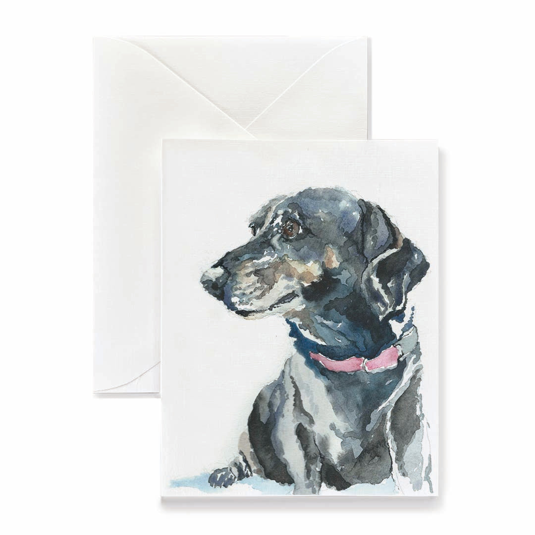 Celebrate life’s special moments with beautifully crafted dog watercolor greeting cards. These are designed especially for your loved ones who adore dachshunds! Each card is a print of an original commissioned pet portrait watercolor, conveying the individuality of genuine family companions. Use these furry friend illustrations for sending birthday wishes, thank you notes, sympathy, or just a thoughtful message.