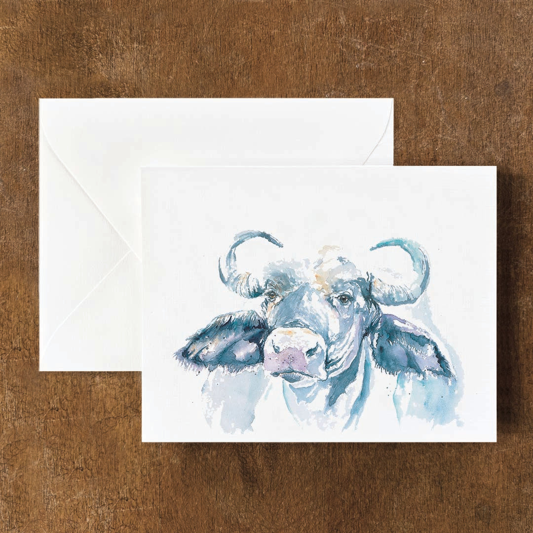 Watercolor Greeting Cards - whimsical art featuring the powerful Cape Buffalo