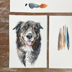Cyndal and I met thanks to a rescue shelter (Operation Kindness) in Dallas, Texas. Abby Nurre Watercolor started originally as Cards for Canines, a greeting card business designed to celebrate our favorite animal companions and give back to the rescue shelters that make a real difference in animal welfare. Cyndal was the direct inspiration, and pet portraits were my focus.